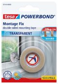 Tesa® Montažna traka Powerbond providna je dizajnirana da pruži brzo, sigurno i trajno prianjanje na svim glatkim i dovoljno čvrstim površinama. Kristalno je čista i izuzetno tanka i zalepiće se za bilo koju odgovarajuće čvrstu ravnu površinu kao što su staklo, ogledala, pločice, drvo i većina plastike. U dobrim uslovima lepljenja, traka od samo 10 cm dovoljna je da izdrži težinu do 2 kg.