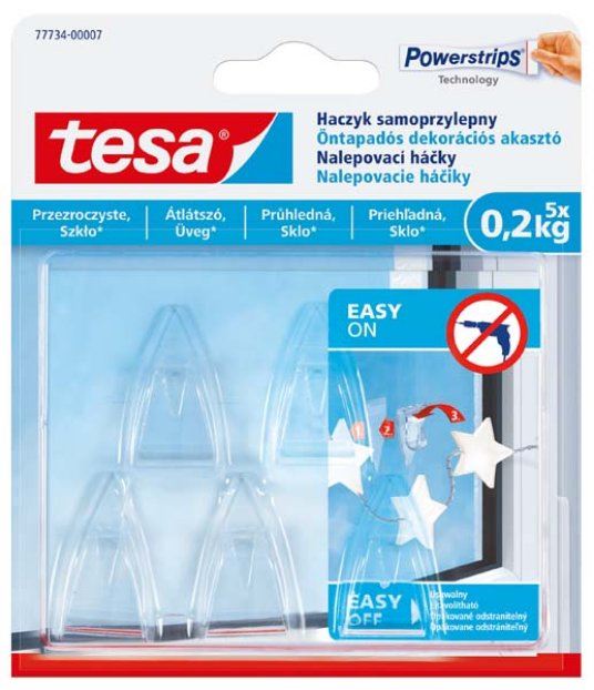 Tesa Powerstrips® Kukica za vešanje predmeta providna su pametne samolepljive kuke dizajnirane da okače lagane ukrase. Savršene su ukrasne kuke za brzo fiksiranje predmeta na skoro svaku glatku površinu (nije pogodno za upotrebu na stiroporu, penastim materijalima, površinama sa nelepljivim premazom, poroznim materijalima). Koristeći Powerstrips tehnologiju lepljenja, ne zahtevaju bušenje rupa. Ne treba zaboraviti činjenicu da se mogu lako ukloniti bez ostavljanja tragova. U kombinaciji sa Powerstrips DECO, možete ih ponovo koristiti bilo kada i bilo gde.