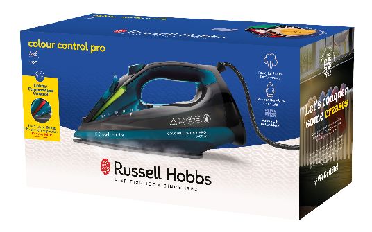 Promena temperature na Russell Hobbs Color Control Pro pegli je intuitivna i jednostavna, zahvaljujući Color Control tehnologiji. Nema više nespretnog određivanja temperature peglanja pomoću točkića. Ako u podešavanjima izaberete temperaturu peglanja sa promenom boje za svaki komad odeće, videćete kako vaša pegla zasvetli hladnom plavom bojom za peglanje sintetičkih materijala ili žarko crvenom bojom za tvrdoglave čvrste nabore na farmericama.
