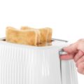 Uz elegantno teksturisano kućište bele boje i hromirane detalje, ovaj toster će se isticati u svakoj modernoj kuhinji.