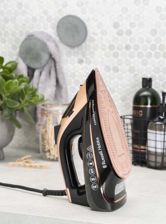 Pregazite za čas vašu gomilu veša za peglanje sa moćnom Copper Express peglom. Izrađena sa kućištem metalik crne i boje bakra, ova Copper Express pegla će potvrditi da imate stila, a pametna konstrukcija i funkcije će vam pomoći da ispeglate sav veš.