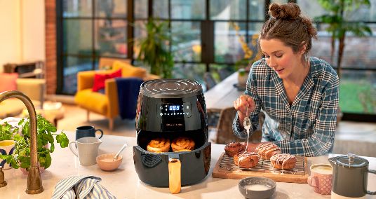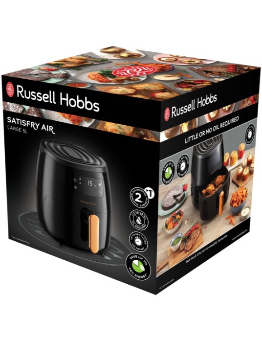 Pripremite se za ozbiljno kuvanje sa Russell Hobbs SatisFry Air Fryer-om od 5 litara. Ima sve što vam je potrebno da opušteno pripremite ukusne obroke. Zašto naručivati hranu kad veliki SatisFry može ispeći do 2,1 kilogram krompira brže nego u tradicionalnoj fritezi ili klasičnoj rerni*, sa malo ili bez imalo ulja, što znači manje masnoće u pripremljenom jelu.