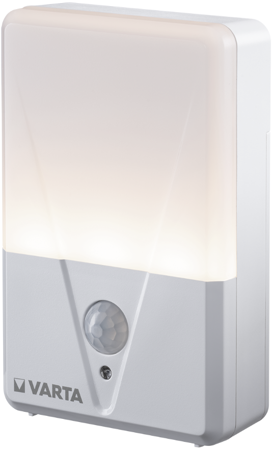 Varta Motion Sensor Night lampa može da detektuje kretanje u dometu od 3 metra i pod uglom od 120 stepeni. Lampa će se automatski isključiti nakon 30 sekundi neaktivnosti i opremljena je toplo belom LED diodom. Pokret se detektuje kada ambijentalno svetlo padne ispod 15 luksa. Ima klizni prekidač.