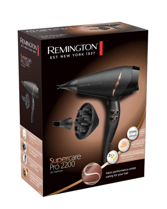 Da li želite frizuru kao iz salona u udobnosti svoga doma? Sada to možete uz pomoć Supercare Pro 2200 AC fena za kosu. Njegov dugotrajni AC motor profesionalnog kvaliteta ima 2.200W snage i izduvava vazduh brzinom od 130 km/h, tako da vam omogućava brzo i snažno sušenje.