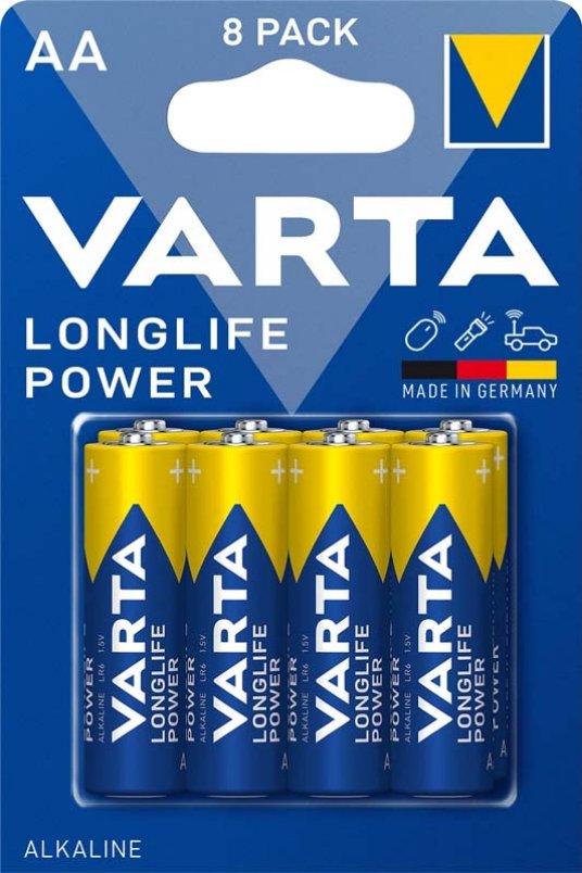 Ako vam treba što više snage - ovo je pravo! VARTA Longlife Power je najmoćnija od VARTA alkalnih baterija. Razvijena posebno za uređaje sa visokom potrošnjom energije. Ostanite nezavisni sa baterijom visokih performansi kada koristite uređaje gladne snage, kao što su igračke sa daljinskim upravljanjem, računarska oprema ili LED lampe.